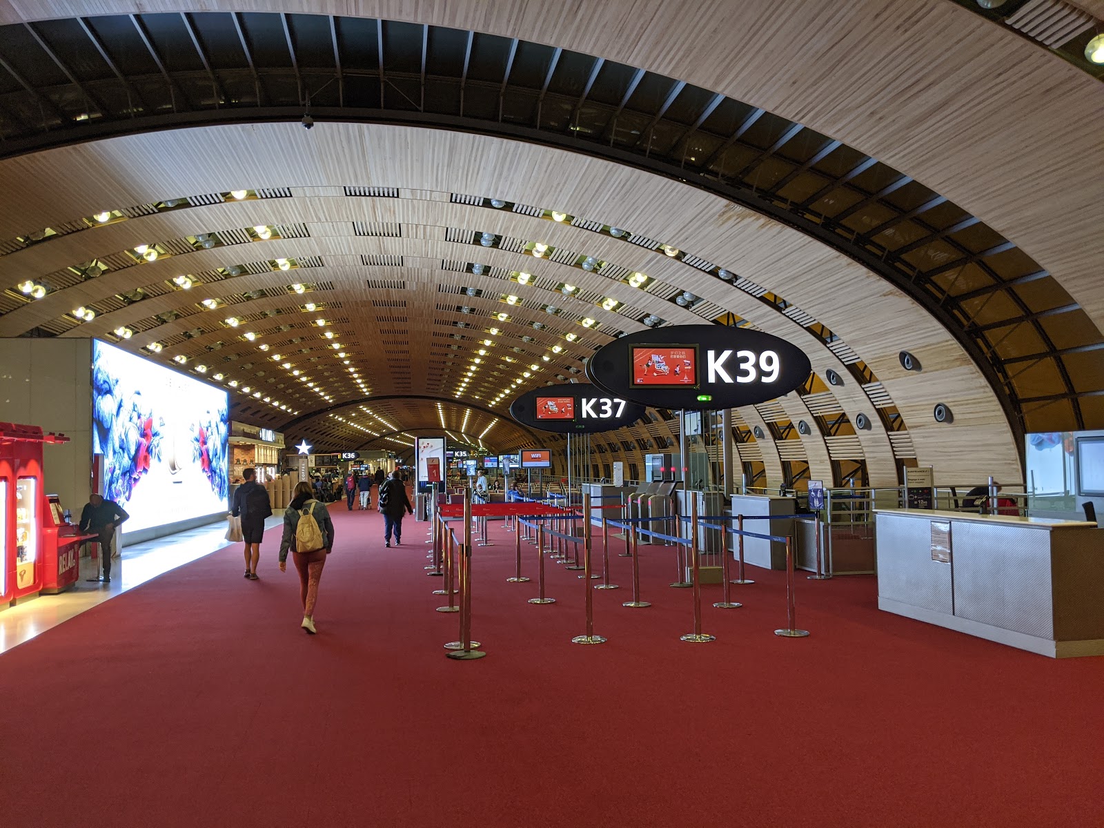 Hanging out at the airport with coffee and baked goods. The plane is here, with a planned flight time of 10 hours, 20 minutes faster than scheduled. This trip has a very short layover in Paris, so getting to Paris early increases my chances of making the connection (contrary to last time, or the other time). Let's see how it is going to work out this time.