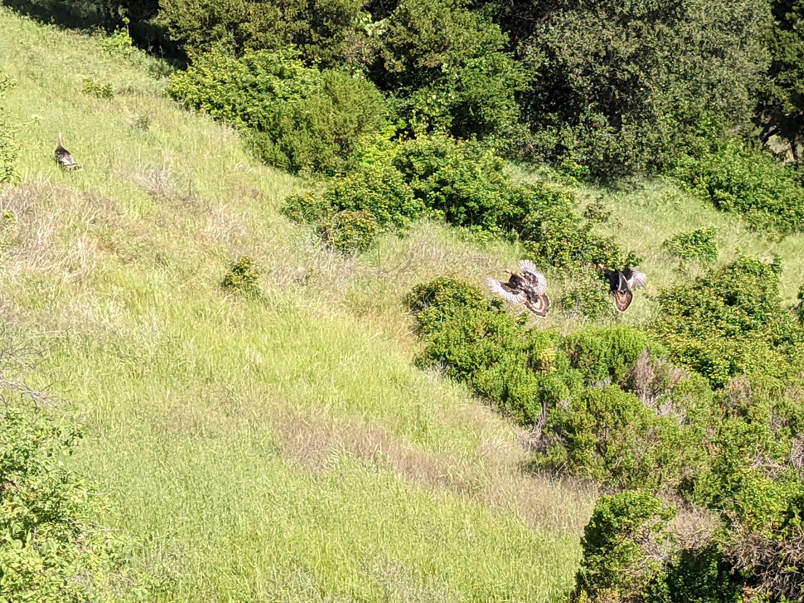 As we're riding up the hill at Santa Teresa County Park we spot turkeys on the hill above the street. Shortly after they decide to cross the street.